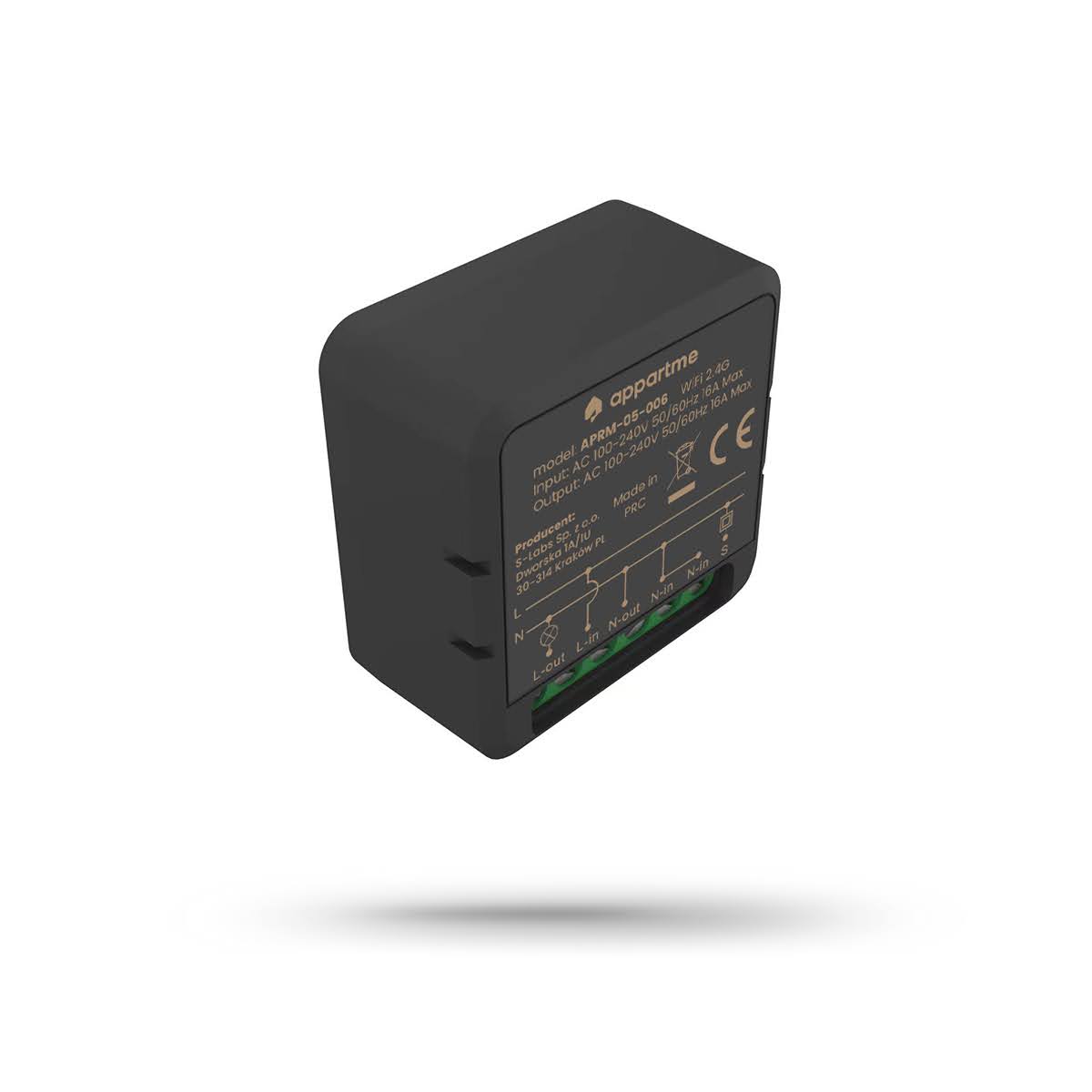 Przekaźnik dopuszkowy Wi-Fi Appartme to urządzenie do sterowania obwodem elektrycznym za pomocą aplikacji mobilnej i manualnego przełącznika. Montaż w puszce podtynkowej sprawia, że urządzenie pozostaje niewidoczne.