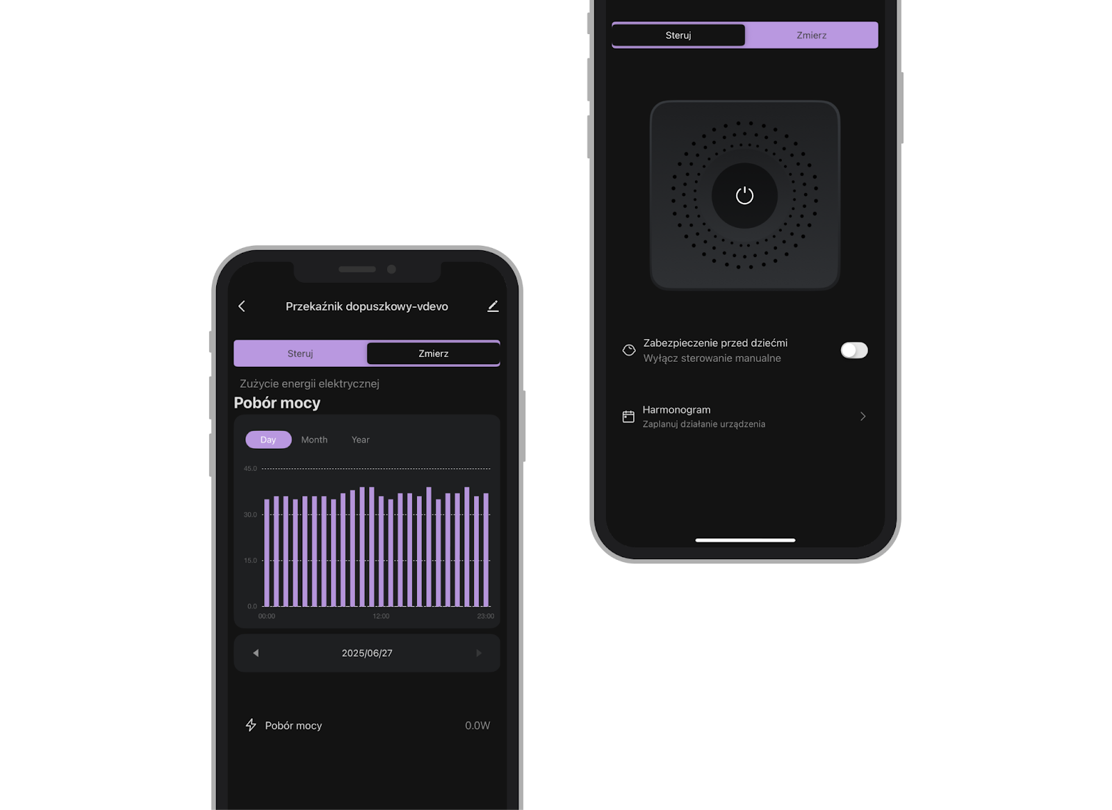 Ustaw przekaźnik tak, by wiatrak włączał się tylko w określonych godzinach i wyłączał automatycznie, gdy nikogo nie ma w domu. Dzięki funkcji pomiaru zużycia energii możesz monitorować koszty chłodzenia, a blokada rodzicielska zapewnia bezpieczeństwo w pomieszczeniach, w których przebywają dzieci.