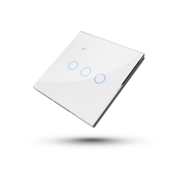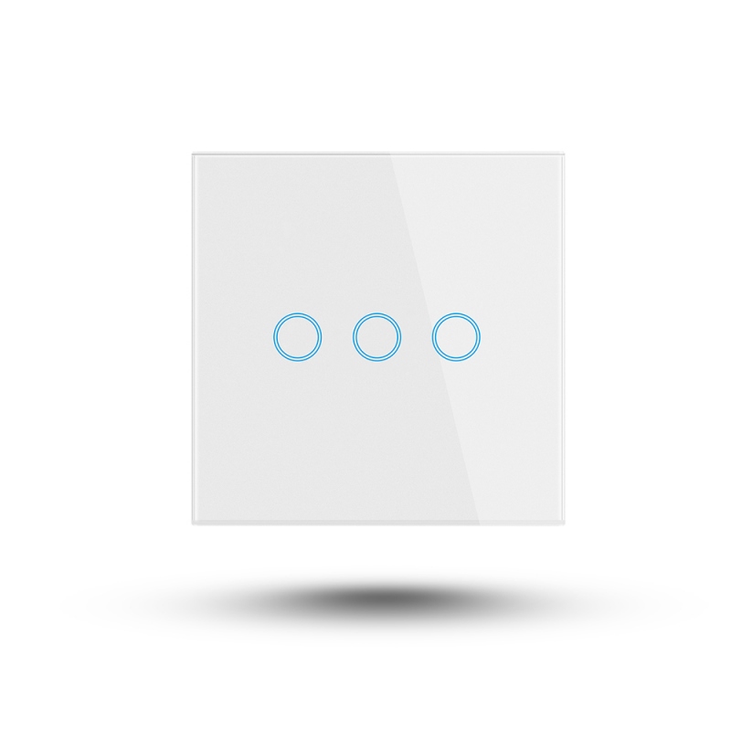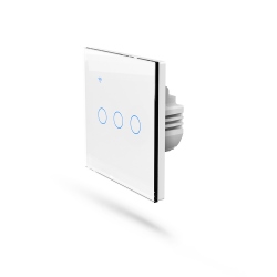 Minimalistyczny, szklany panel w eleganckiej bieli z trzema podświetlanymi przyciskami LED pozwala sterować aż trzema obwodami światła w jednym miejscu. To maksimum wygody i stylu w Twoim domu.
